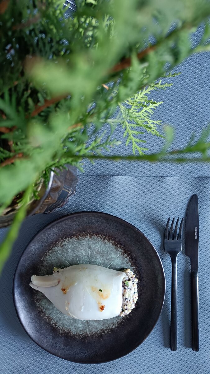 Когда все компоненты готовы, овощную смесь стоит объединить с киноа и творожным сыром, тщательно перемешав. Получившуюся начинку следует вставить в тушки кальмаров. Для усиления вкуса и легкого подрумянивания можно быстро обжарить фаршированные кальмары на сковороде. Важно помнить, что не стоит перегружать начинкой: кальмар может сжаться, и начинка вытечет во время готовки.