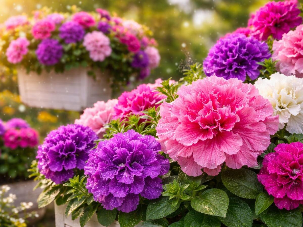 Этот современный гибрид петунии сочетает в себе яркие декоративные характеристики и практическую устойчивость. Одним из самых заметных плюсов фриллитунии являются её крупные, махровые цветы с волнистыми лепестками. Эти бутоны сами по себе выглядят эффектно и не требуют сложного оформления, чтобы произвести впечатление.