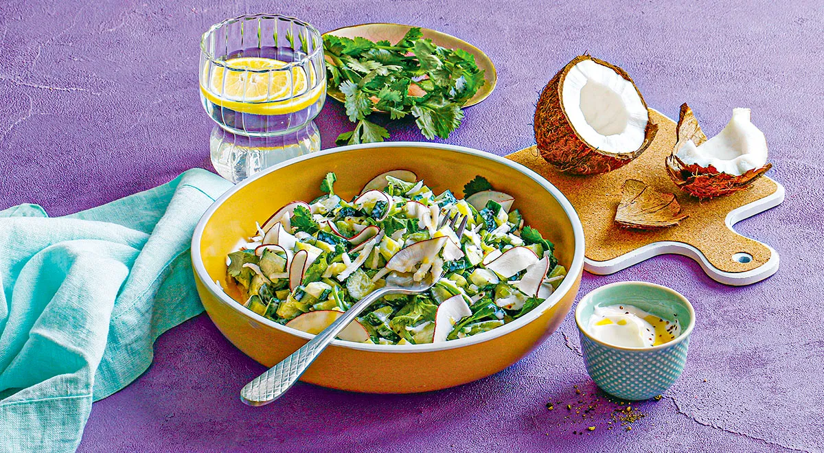 Огуречная райта с кокосом — это необычное и освежающее блюдо, которое идеально подойдет в качестве гарнира или закуски. Отметим, что его выделяет легкий и ароматный вкус, который напомнит о летних днях.