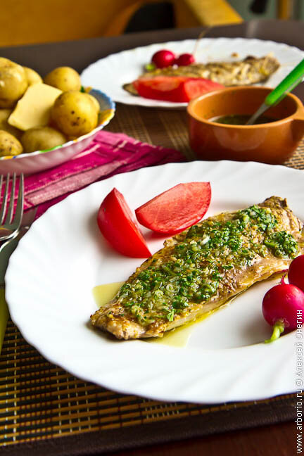 Филе скумбрии на гриле с зелёной сальсой