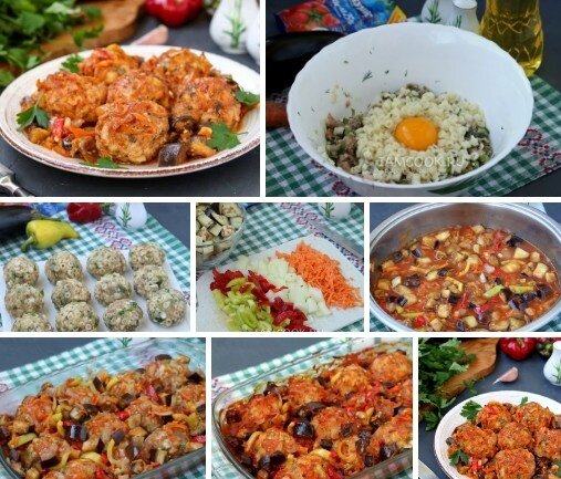 Теперь выложите тефтели в форму для запекания, предварительно смазанную растительным маслом. Залейте их овощным соусом и заполняйте пробелы между тефтелями оставшимися овощами. Разогрейте духовку до 180°C и запекайте блюдо в течение 30 минут. После приготовления подавайте тефтели с макаронами на тарелке, наслаждаясь вкусом!
