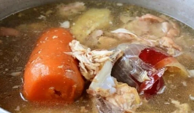 - Специи и овощи: Лук в шелухе добавит бульону красивый золотистый оттенок, а морковь можно нарезать не только кружочками, но и в декоративные формы. Чеснок в бульоне необходимо добавлять после процеживания.