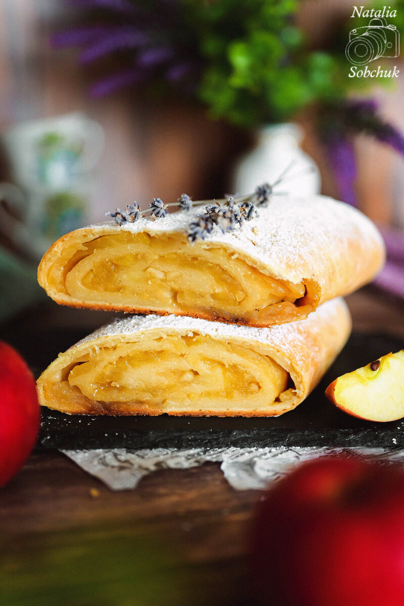 Готовый штрудель можно посыпать сахарной пудрой для красоты. Приятного аппетита!