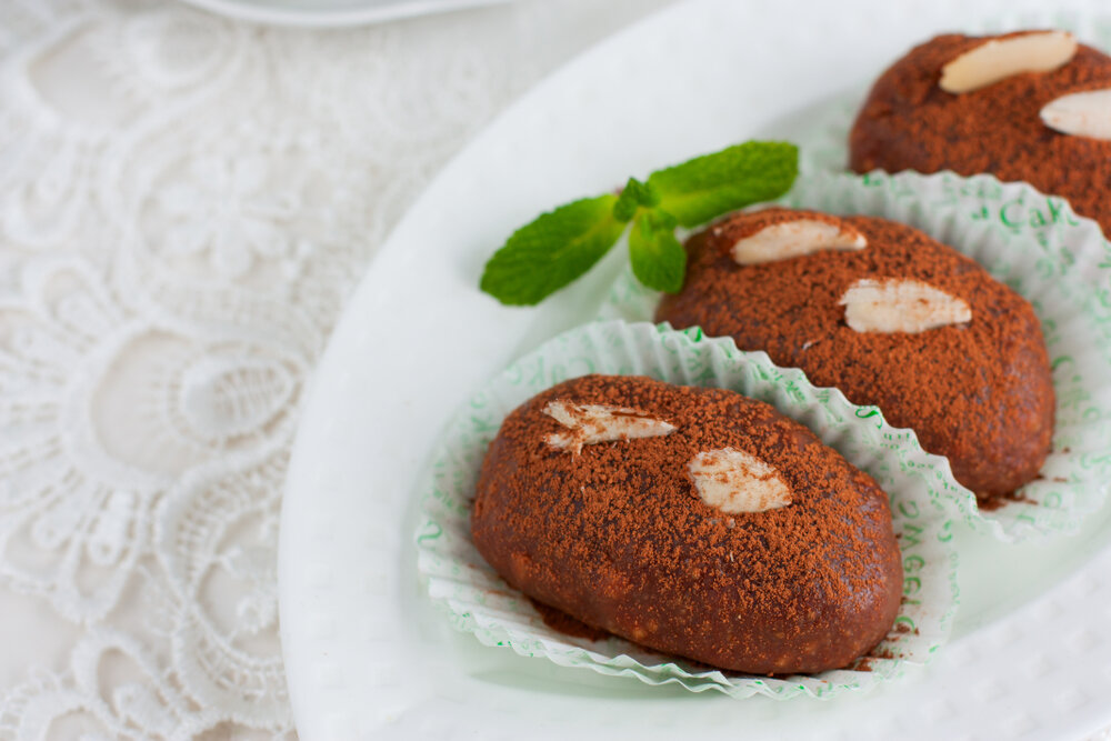 - Смешайте остывшую шоколадную массу с измельченным печеньем и тщательно перемешайте все ингредиенты. Сформируйте из полученной массы пирожные любой формы и обваляйте в оставшейся смеси какао и печенья.