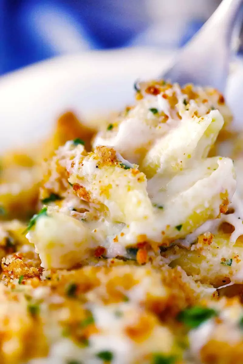 Секрет у этого блюда в чудесном сырном соусе, который готовится из сливочного масла, молока, моцареллы и пармезана, с добавлением свежей петрушки. А хрустящая корочка, состоящая из панировочных сухарей, сливочного масла, пармезана и чесночного порошка, добавляет этому блюду неповторимый шарм и глубину вкуса. Каждый укус — это маленький праздник на вашем столе!
