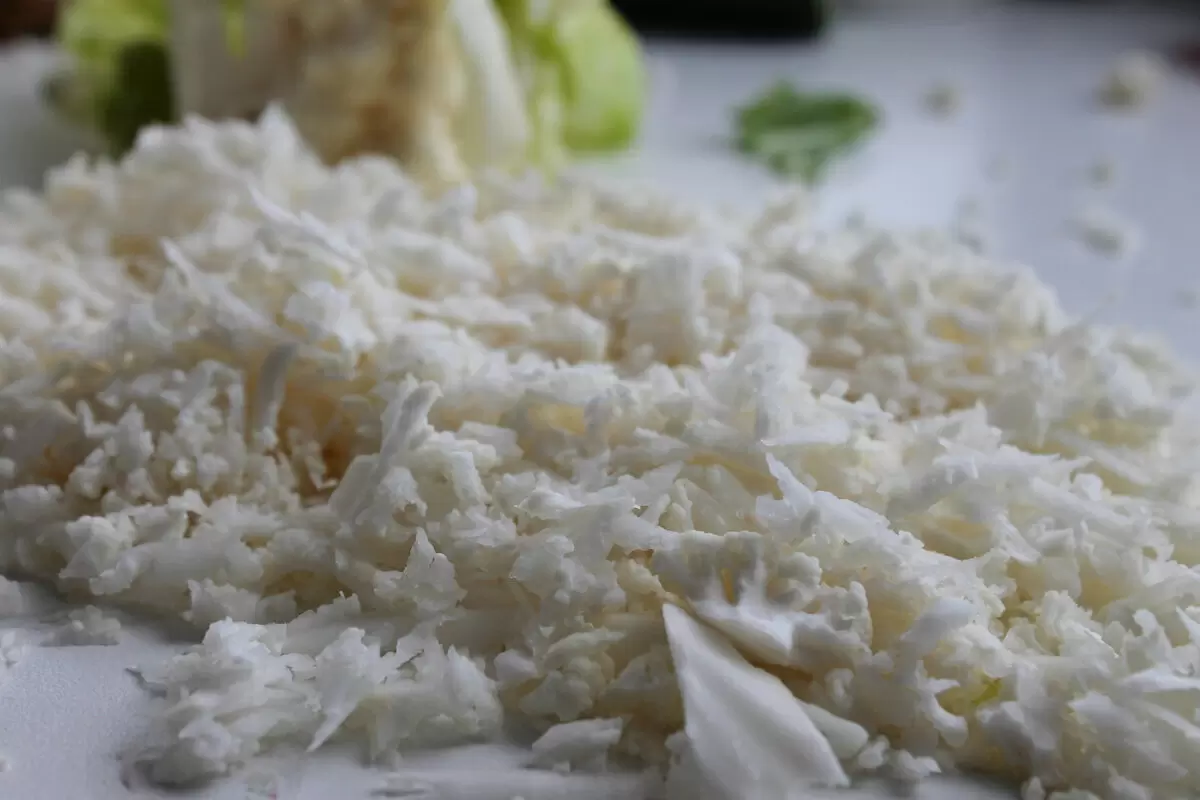 Итак, приготовление начнем с 150 граммов цветной капусты и 100 граммов сыра. Сначала стоит натереть капусту, не разделяя на зонтики, так будет удобнее. Далее сыр, который также необходимо натереть, ведь сочетание этих двух ингредиентов — уже магия.
