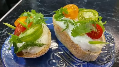 После этого, обильно намазать полученный сливочный крем на кусочки свежего хлеба. Чтобы добавить ярких красок, можно украсить каждую бутербродик половинкой томата черри и посыпать любимой зеленью. Эти солнечные и аппетитные бутерброды идеально подойдут как для перекуса, так и для праздника.