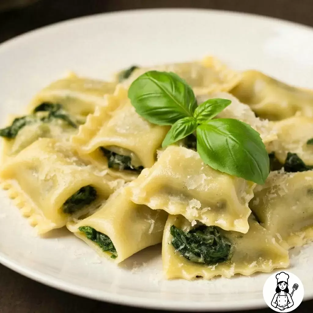 Шаг 4: Варка (3-4 минуты) Вскипятить подсоленную воду и аккуратно погрузить равиоли, следя за тем, чтобы они не прилипли ко дну. Варить до тех пор, пока они не всплывут, и ещё 1-2 минуты.