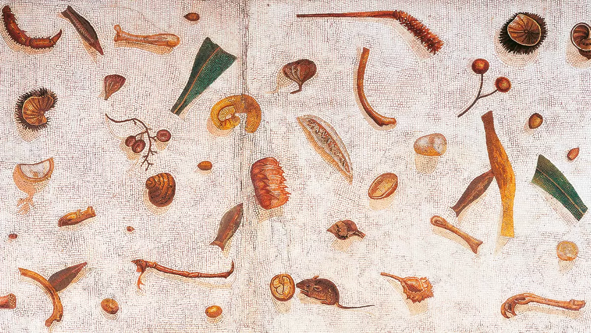 Древняя мозаика под названием «Неприбранный пол», выполненная во II веке нашей эры, открывает перед исследователями уникальный взгляд на привычки аристократии Рима.