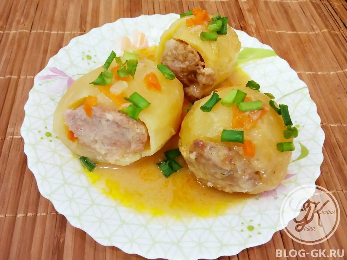 5. Наполненные мясной начинкой картофельные «лодочки» накрывают верхушками и укладывают их в казан на поджаренные овощи.