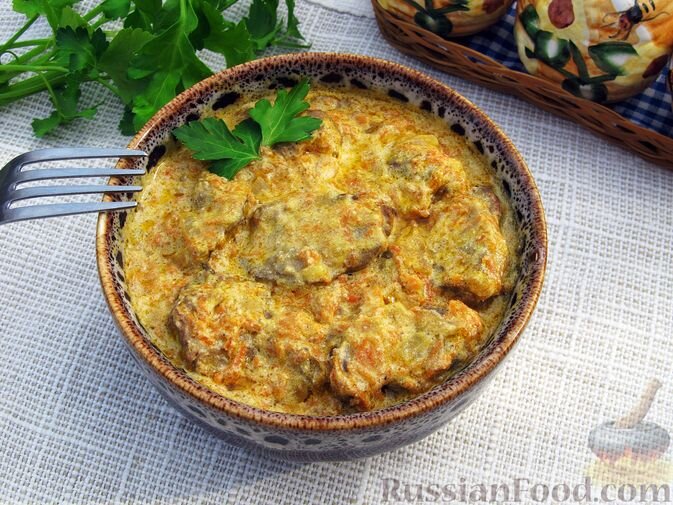 Тушёный картофель с грибами в сметанном соусе