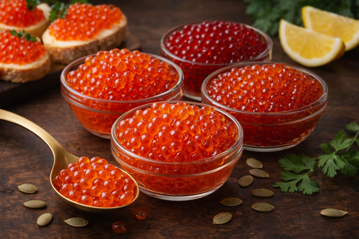 Существует несколько популярных видов красной икры, каждый из которых имеет свои особенности: