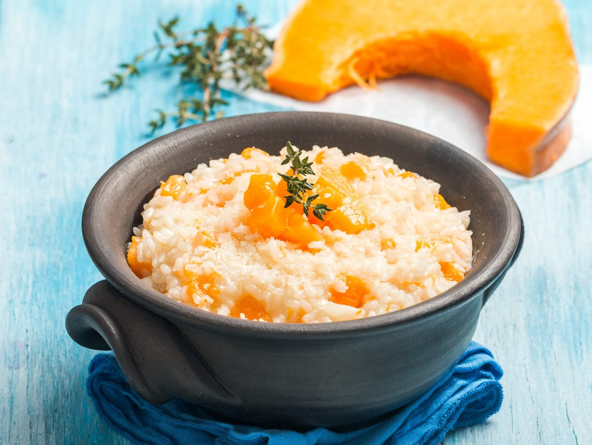 Выбирая тыкву, отдать предпочтение мускатным сортам с яркой мякотью. Рис обязательно должен быть круглозерным для достижения нужной кремовости, а молоко лучше - с жирностью от 2,5% для большего вкусового удовольствия.