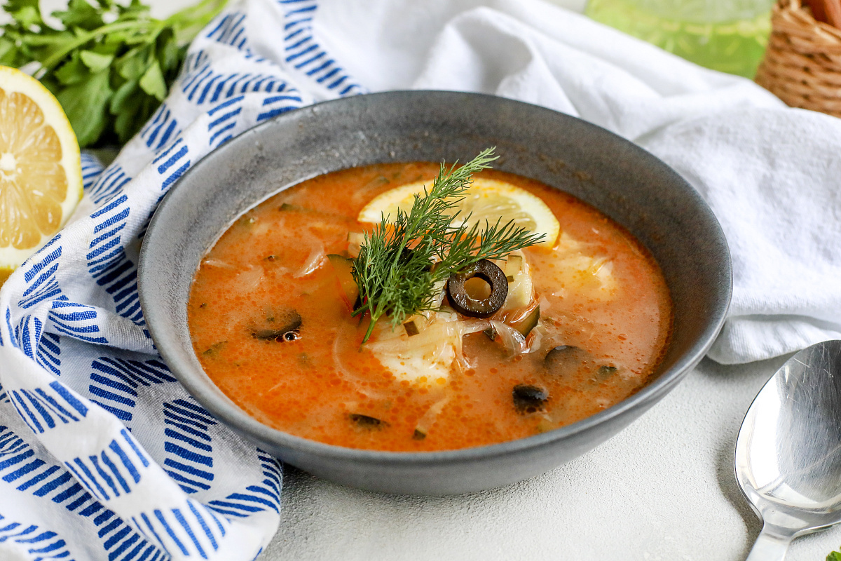 Шаг 4: Нарежьте мелко перец чили, не забывая мыть руки после. Маслины также нарежьте кольцами. В суп добавьте каперсы, маслины и рыбу, приправьте по вкусу. Готовьте на медленном огне в течение 5 минут. Мелко нарежьте укроп и подавайте суп, украсив зеленью и сбрызнув лимонным соком.