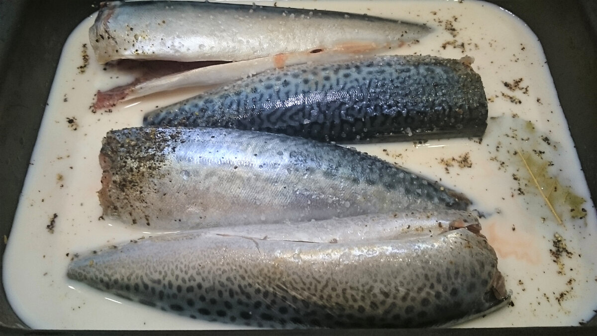 Вот один из возможных рецептов: для начала следует разогреть духовку до 190 градусов. В форму для запекания помещают рыбу, заливают её молоком, добавляют лавровый лист и полукольца лука. После чего запекают 10 минут, периодически переворачивая рыбу.