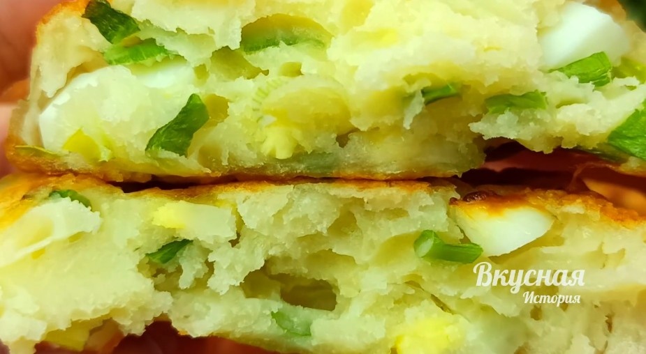 Подготовленный продукт дополняется нарезанными вареными яйцами и луком, что придаст особый вкус. На разогретую сковороду с маслом тесто выкладывается порционно, формируя оладьи. Жарить следует на среднем огне, пока они не станут золотистого цвета. После готовности оладушки рекомендуется выложить на бумажное полотенце, чтобы избавиться от лишнего масла.