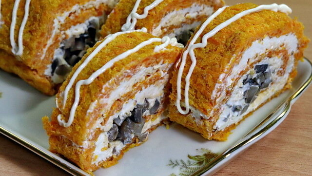 Нежный морковный рулет с грибами и сыром: быстро и вкусно