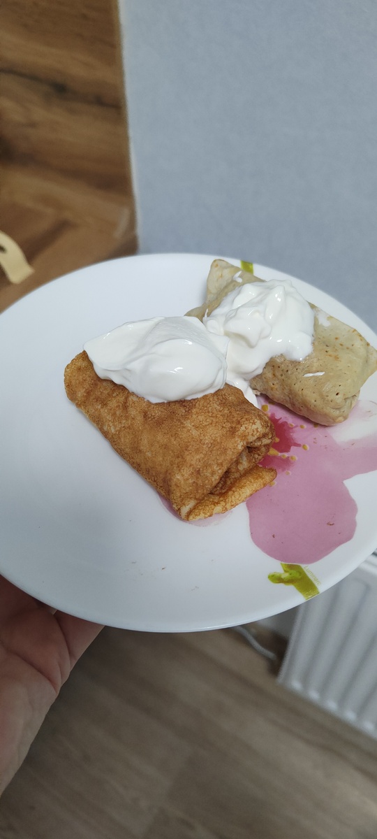 Утро можно начать с теплых блинов с нежным фаршем. Чем постнее ингредиенты, тем меньше итоговая калорийность. Для улучшения вкуса блюдо можно дополнить несколькими ложками сметаны — это не только придаст кремовую текстуру, но и сделает завтрак более сытным.