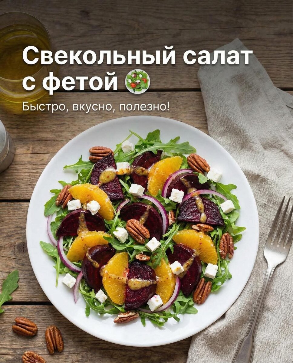 Этот салат сочетает в себе сладость свёклы, солоноватую фету и яркую цитрусовую свежесть. Он не только вкусный, но и полезный, что делает его отличным вариантом для ужина, праздника или диетического питания.