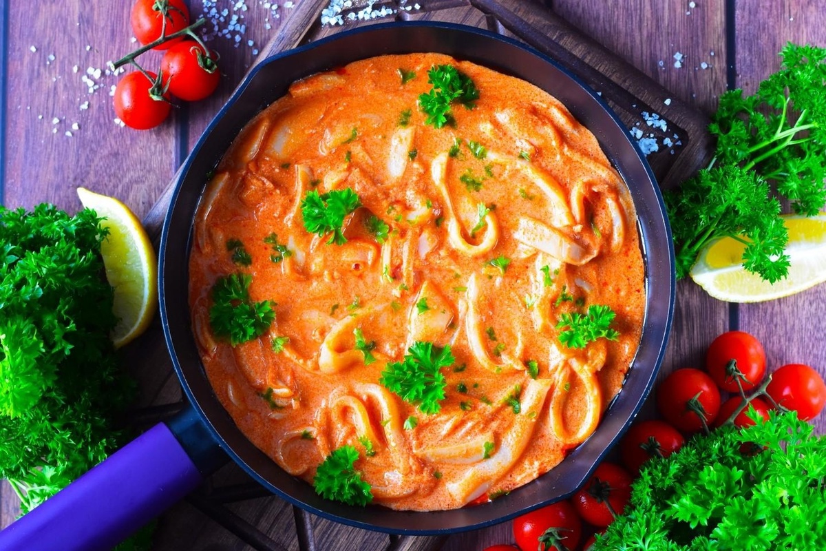 Кальмары в сметане с луком — это не только полноценное второе блюдо, но и удивительная закуска, которая готовится всего за 20 минут. Это простое, но изысканное угощение может с легкостью заменить мясные блюда и внести разнообразие в повседневное меню. Благодаря нежному соусу и свежим овощам блюдо становится более сытным и аппетитным, идеально подходя к любому гарниру.