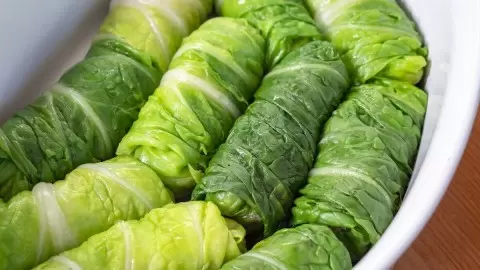 Когда листы капусты немного отварятся, их помещают в холодную воду, чтобы остановить процесс приготовления. После этого аккуратно подсушивают на бумажных полотенцах.