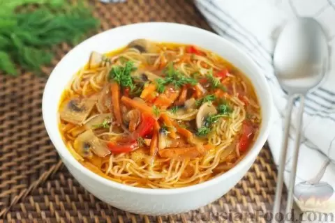 Среди других интересных вариантов можно добавить куриный суп с шампиньонами и стручковой фасолью или аппетитный суп с фунчозой и соевым соусом, который удивит своей глубиной вкуса.