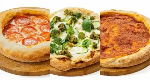 - С брокколи и песто: это белая пицца, где брокколи и другие овощи создают впечатление свежести и легкости.