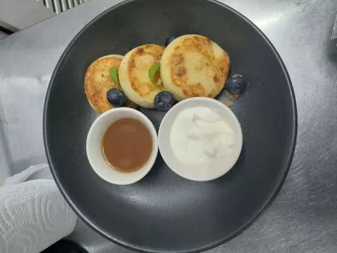 После неоднократных просьб о доставке ножей и вилок, официант только через десять минут с трудом выполнил свой долг, и еда остыла. Ужас заключался не только в халатности обслуживания, но и в качестве самой еды. Когда сырники подали, они были украшены медом и ягодами, но вкус оказался совершенно не тем, что ожидали. Вместо сметаны в соуснике оказался майонез, что вызвало шок и недовольство у клиента.