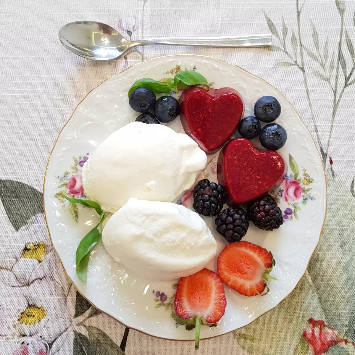 На финальном этапе необходимо разложить по тарелкам порции желе и добавить рядом любимое мороженое. Декорировать десерт свежей клубникой, ежевикой и голубикой, а также листьями базилика для контраста вкусов и цвета. Этот изысканный десерт не только порадует глаз, но и станется настоящей находкой для гурманов, способных оценить сочетание ярких ягодных вкусов.