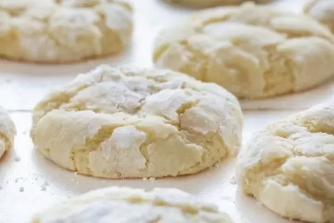 С помощью ложки для мороженого формируйте небольшие шарики из теста и обваляйте их в сахарной пудре. Выложите на противень с пергаментом, оставляя пространство между ними, так как печенье будет увеличиваться в объеме во время выпекания. Выпекайте 8-11 минут до легкой золотистой корочки и оставьте на противне, чтобы печенье немного остыло, а затем перенесите на решетку.