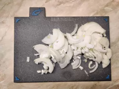 Начинается все с нарезки лука. Очистите его от шелухи и порежьте полукольцами — так он станет более ароматным и сочным. Лук — ключевой ингредиент в этом рецепте, поэтому лучше использовать его побольше.