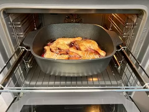 - Завершение экскурса по вкусу: За 10 минут до окончания запекания уберите крышку, чтобы окорочка подрумянились.