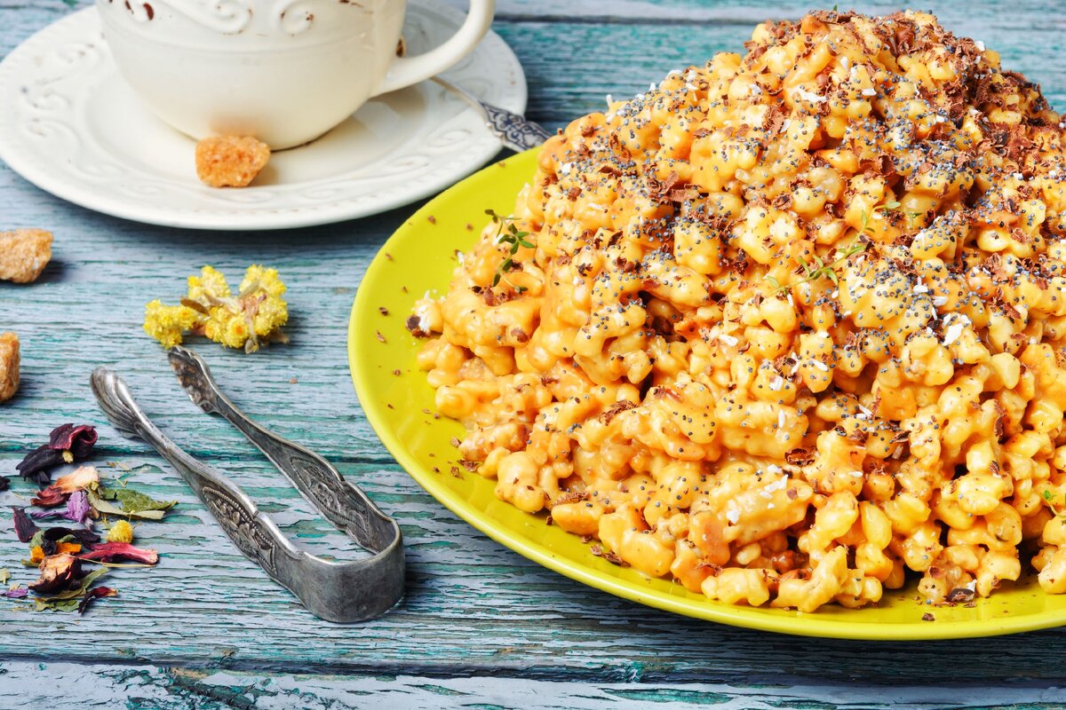 Муравейник — это не просто лакомство, но и воспоминание о детстве для многих. Этот простой и вкусный десерт, сделанный из печенья, всегда выручает хозяек, когда в доме не хватает времени на сложные угощения. Всего за 15-20 минут можно создать настоящий кулинарный шедевр! Главное — дать ему настояться в холодильнике минимум два часа для качественной пропитки. Для готовки потребуется глубокая посуда, блендер и немного усилий по дроблению орехов.