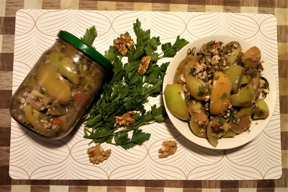 В кулинарии всегда есть место для экспериментов, и сочетание зеленых помидоров с грецкими орехами — это именно то, что нужно для создания невероятной закуски. Хотя сезон зеленых томатов еще не наступил, обстоятельства сложились так, что в руках оказалась целая ведерко этих плодов. Вдохновленная южными традициями, была создана эта ароматная закуска, которая взбудоражит вкусовые рецепторы.