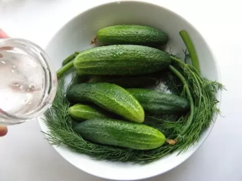 Сперва тщательно промываются огурцы и зелень, после чего огурцы нарезаются: маленькие — кружочками, а крупные лучше разделить на полукольца. Лук также очищается и нарезается полукольцами. Все нарезанные овощи отправляются в одну большую миску.