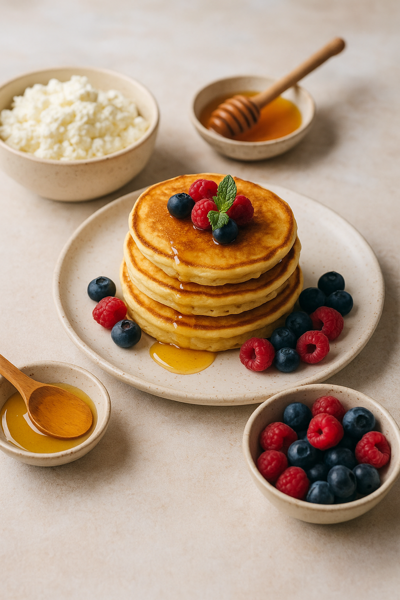 Рецепт 1: Нежные творожные панкейки с ванилью и мёдом