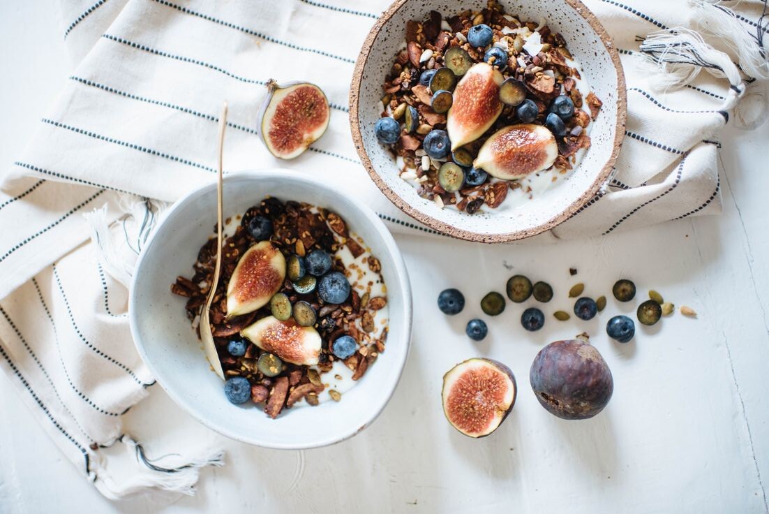«Ленивая» овсянка. 50 г овсяных хлопьев перемешать с 200 мл греческого йогурта, 20 г миндаля, 80 г ягод, 1 ч.л. мёда и щепоткой корицы. Подача красивая и сытная — для тех, кто любит эстетичное начало дня.