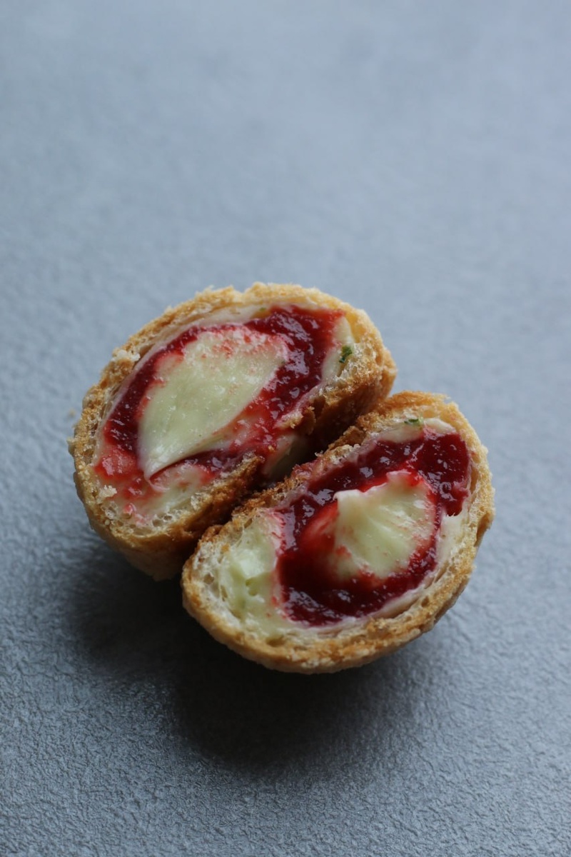 Важно применять каждую начинку должным образом: первое, что необходимо сделать — проделать небольшое отверстие в каждом шу для начинки, заполнив их кремю и клубничным конфи. В результате получается удивительное сочетание свежести и полноты вкуса.